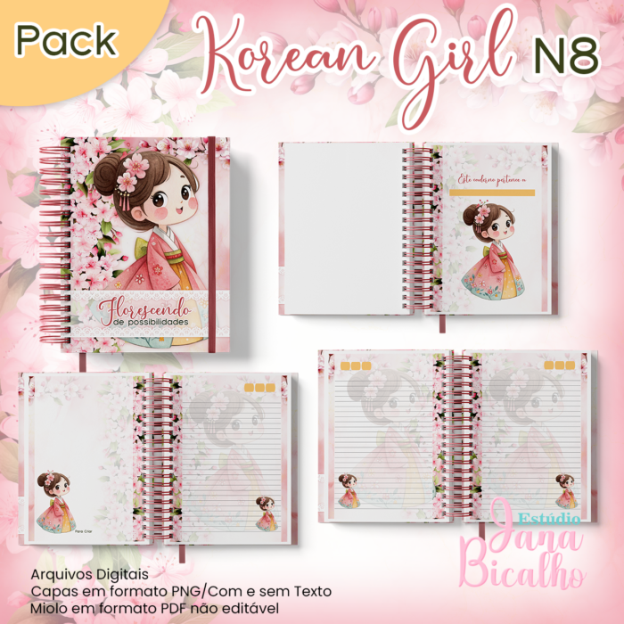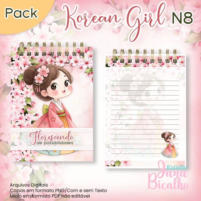 Caderno Pautado A5+Bloquinho A6 Korean Girl N8